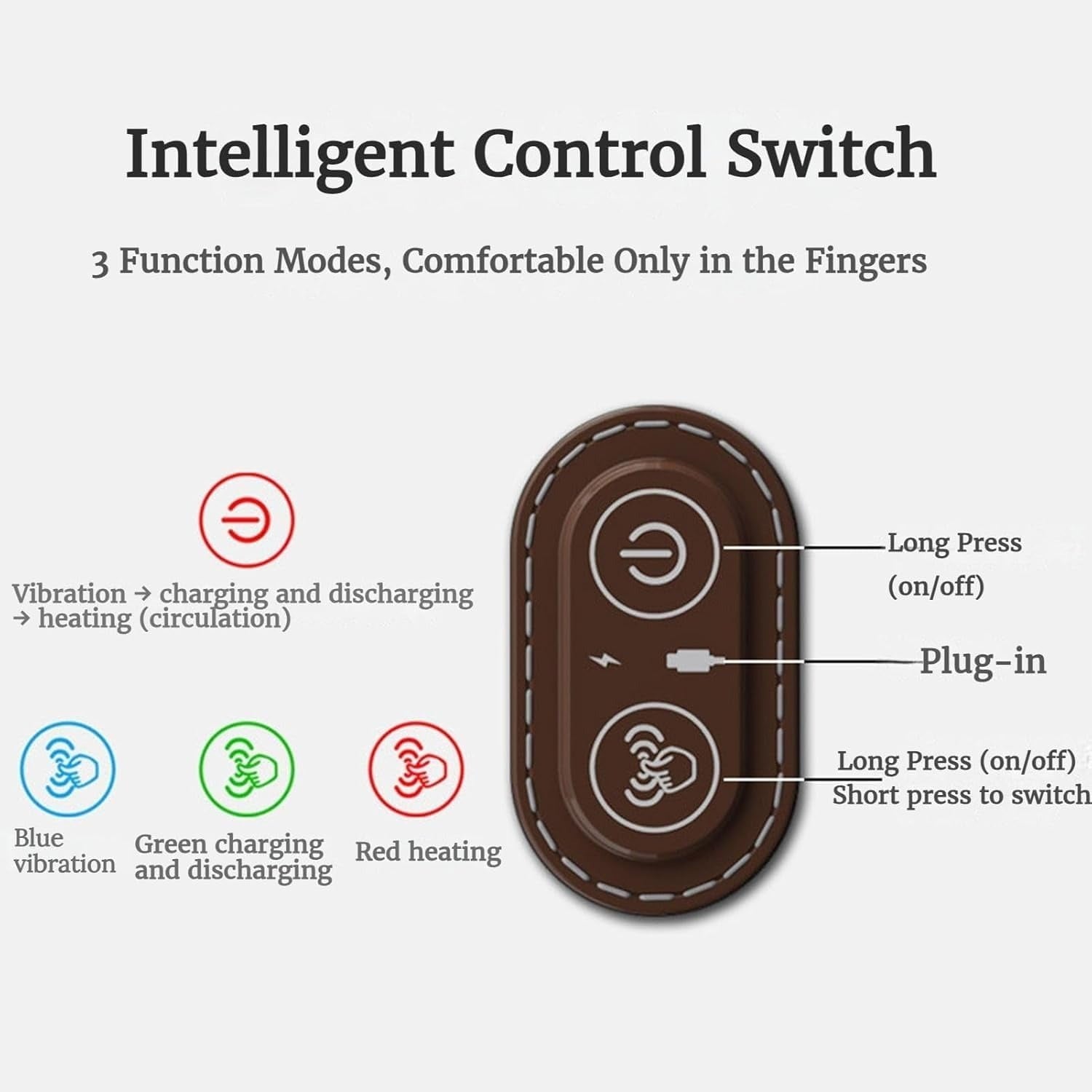 1. Plug it in using our provided USB-C cable and charging adapter 2. Hold the massage or heat button for 5 seconds until the light turns on. 3. Press the buttons again to change to different massaging speeds and heat settings 4. Enjoy your relaxing massage!
